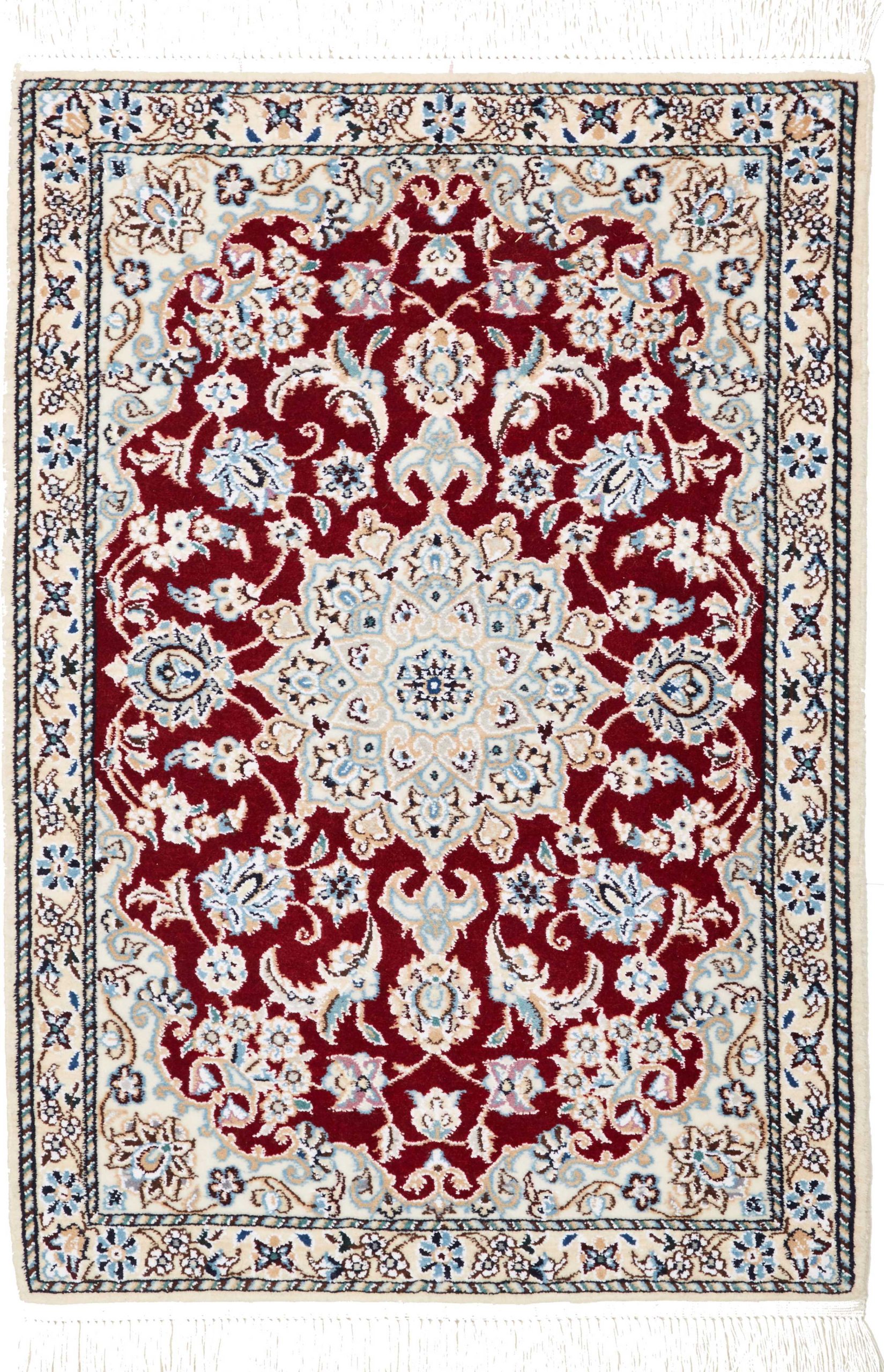Nain carpets are high-quality Persian rugs woven in the Nain region of Iran. Known for their intricate designs, these carpets feature fine details, often incorporating floral and medallion patterns. Made from premium wool or silk, Nain carpets are prized for their elegance, durability, and smooth texture.