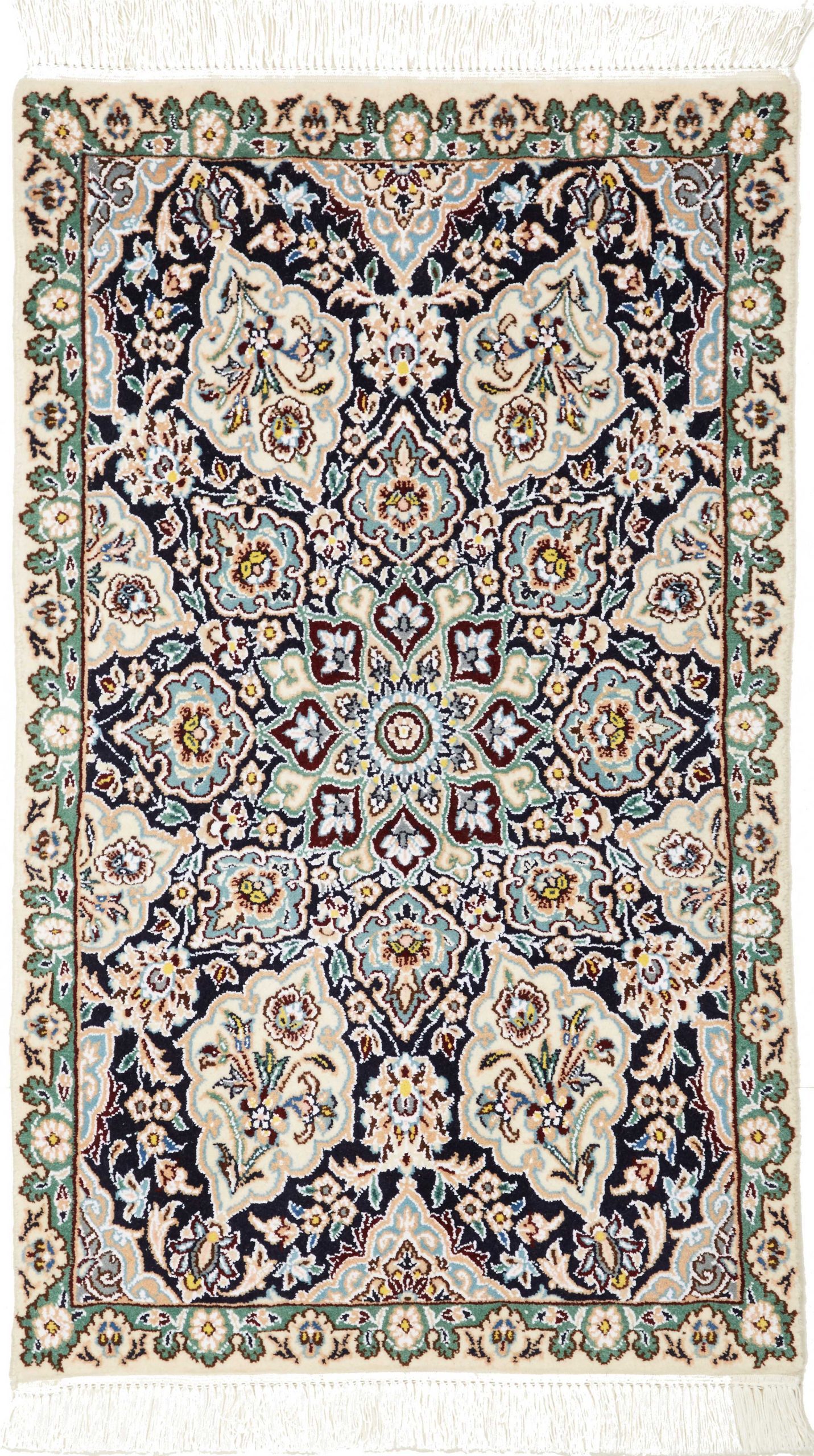 Nain carpets are high-quality Persian rugs woven in the Nain region of Iran. Known for their intricate designs, these carpets feature fine details, often incorporating floral and medallion patterns. Made from premium wool or silk, Nain carpets are prized for their elegance, durability, and smooth texture.