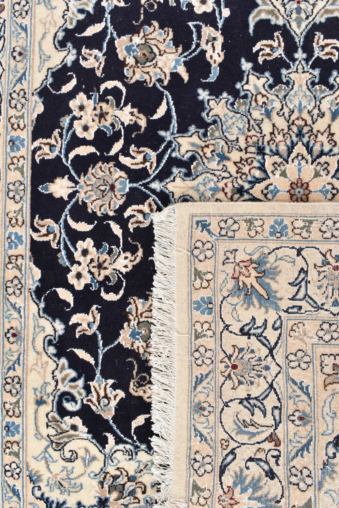 Nain carpets are high-quality Persian rugs woven in the Nain region of Iran. Known for their intricate designs, these carpets feature fine details, often incorporating floral and medallion patterns. Made from premium wool or silk, Nain carpets are prized for their elegance, durability, and smooth texture.