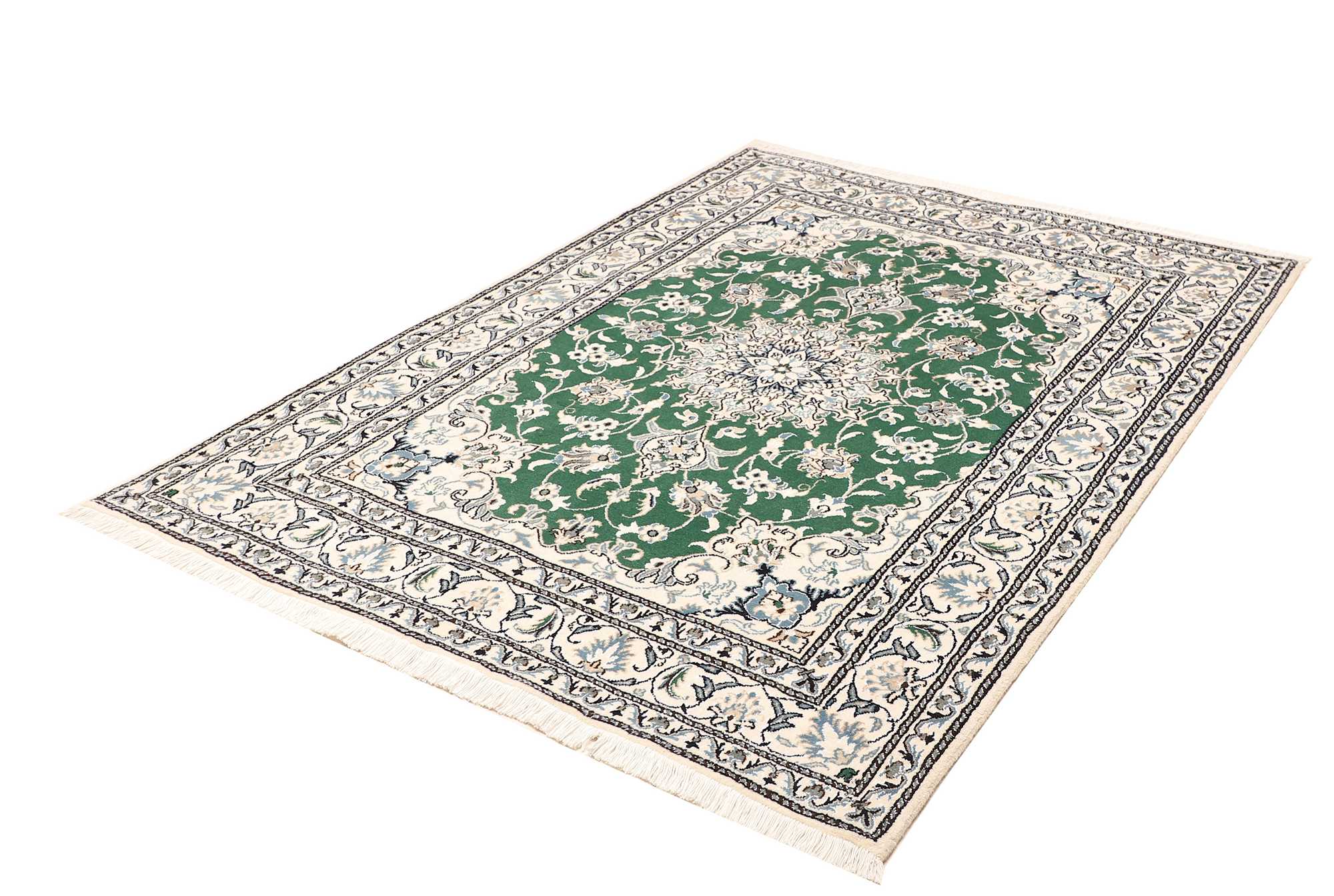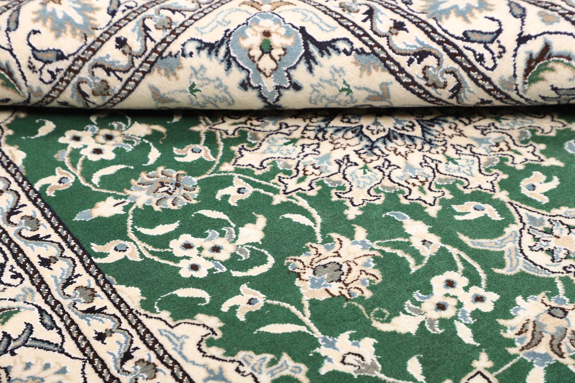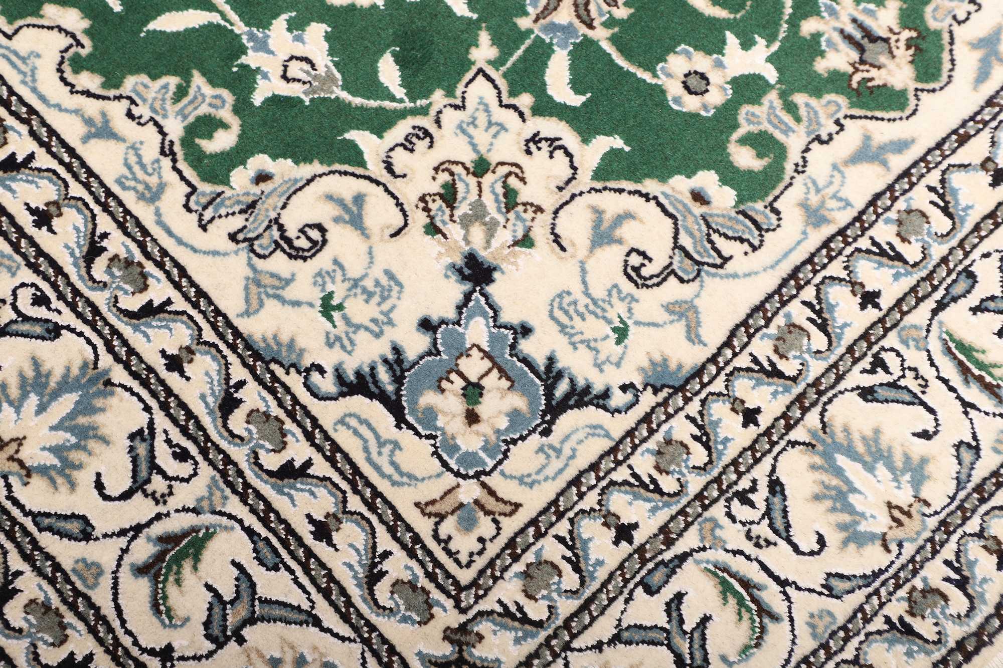 Nain carpets are high-quality Persian rugs woven in the Nain region of Iran. Known for their intricate designs, these carpets feature fine details, often incorporating floral and medallion patterns. Made from premium wool or silk, Nain carpets are prized for their elegance, durability, and smooth texture.
