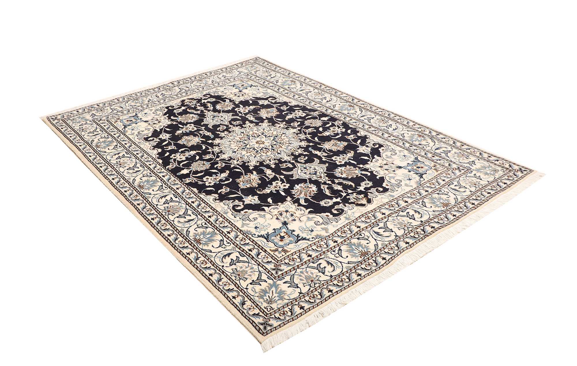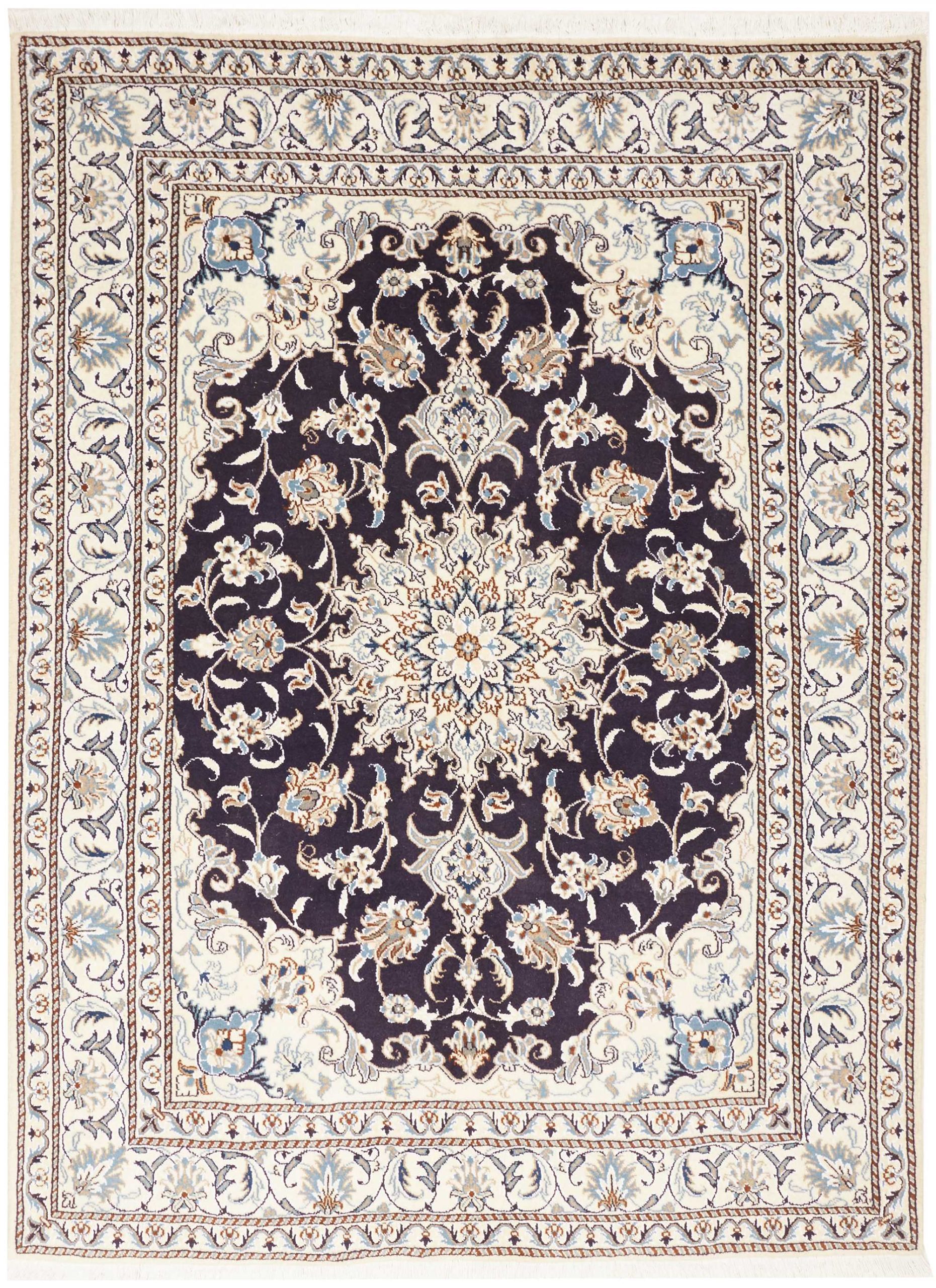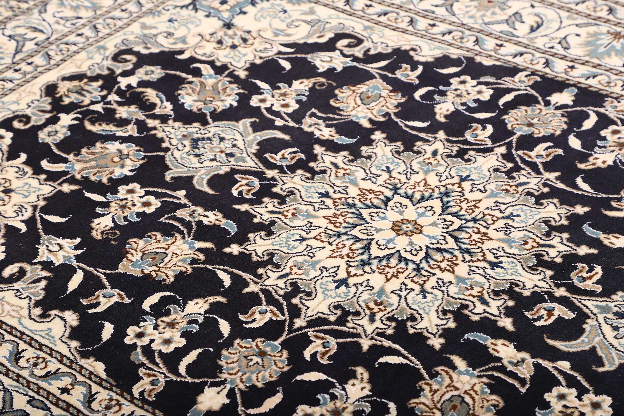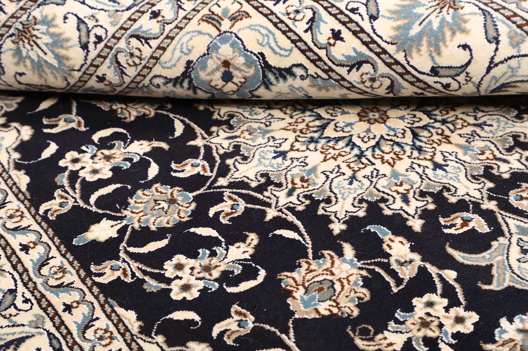 Nain carpets are high-quality Persian rugs woven in the Nain region of Iran. Known for their intricate designs, these carpets feature fine details, often incorporating floral and medallion patterns. Made from premium wool or silk, Nain carpets are prized for their elegance, durability, and smooth texture.
