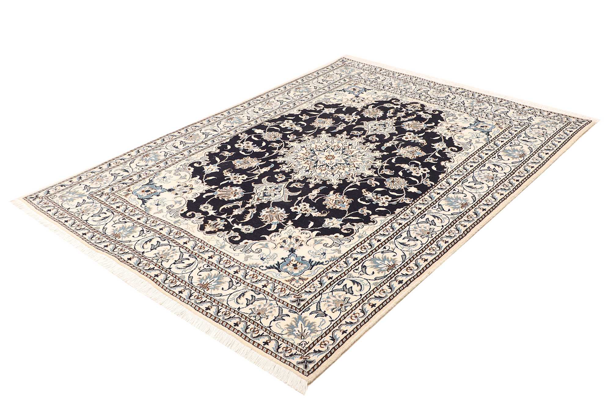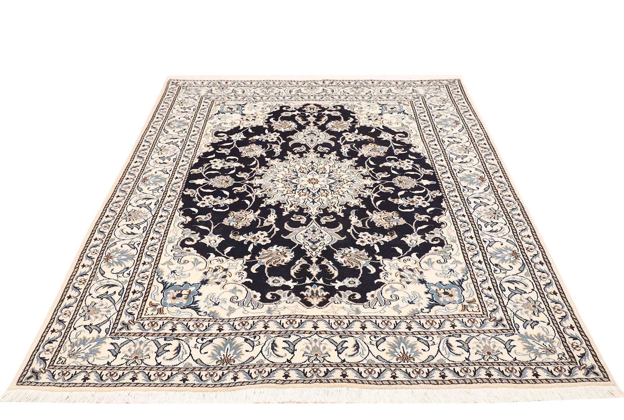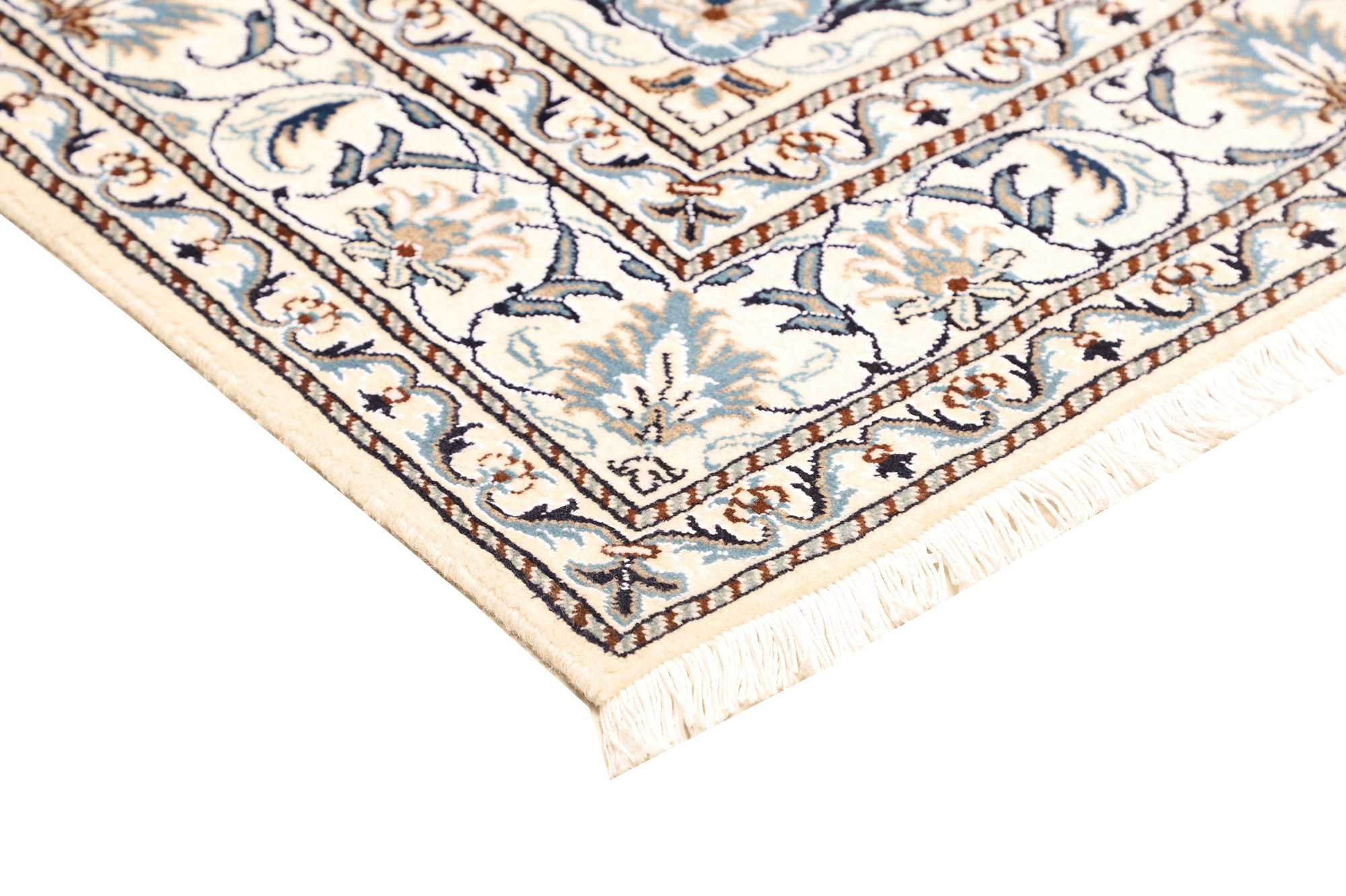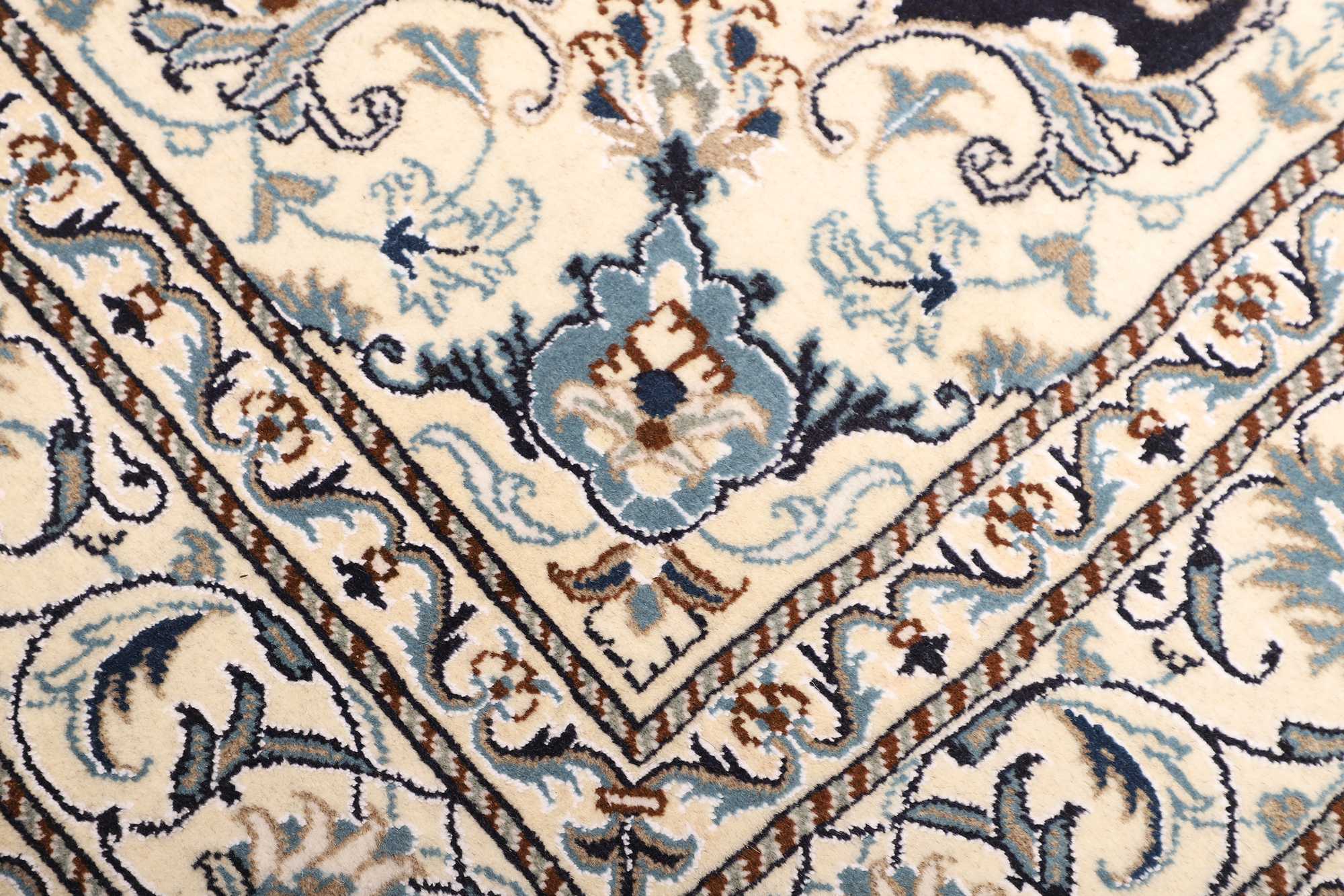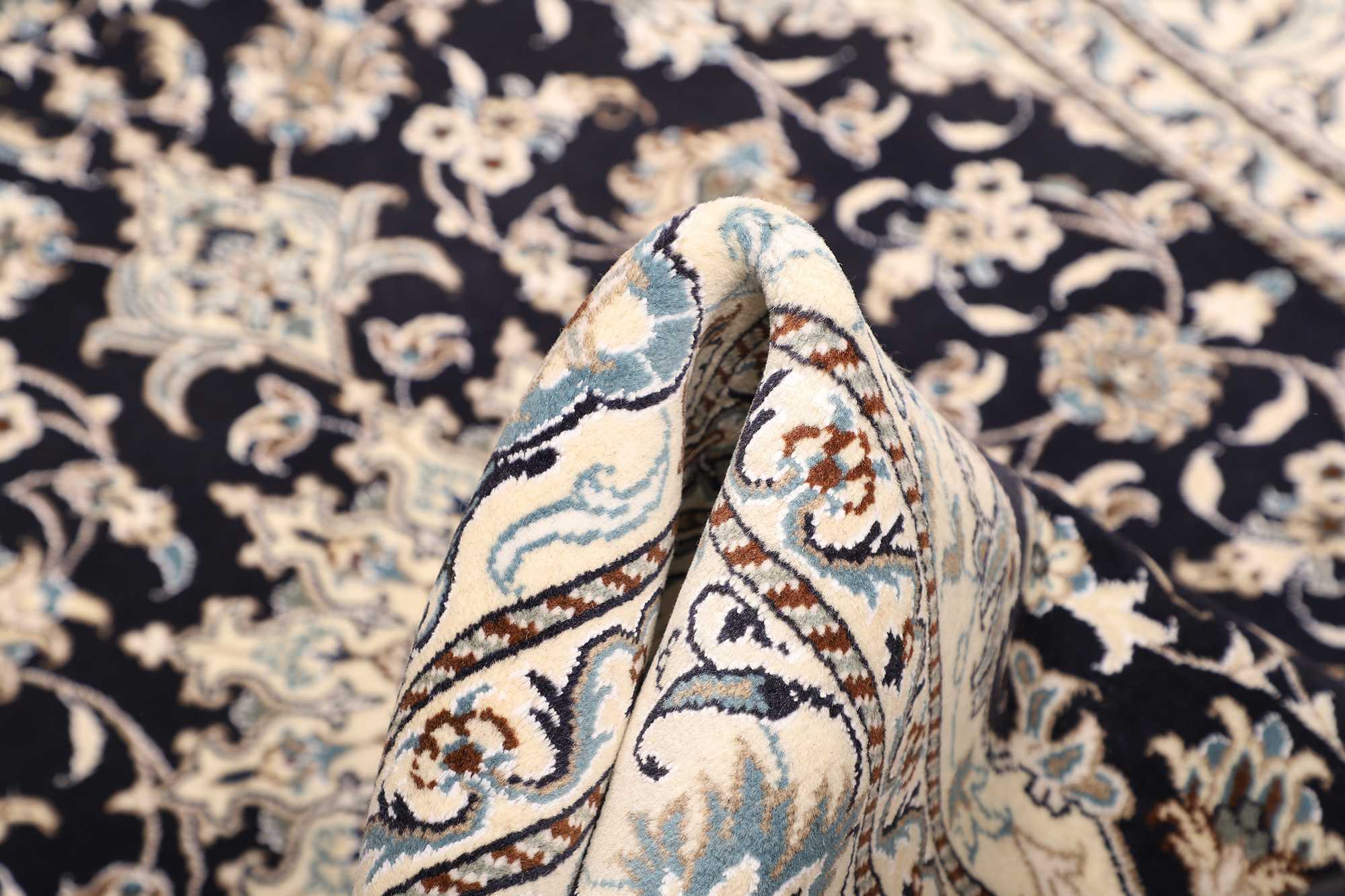 Nain carpets are high-quality Persian rugs woven in the Nain region of Iran. Known for their intricate designs, these carpets feature fine details, often incorporating floral and medallion patterns. Made from premium wool or silk, Nain carpets are prized for their elegance, durability, and smooth texture.