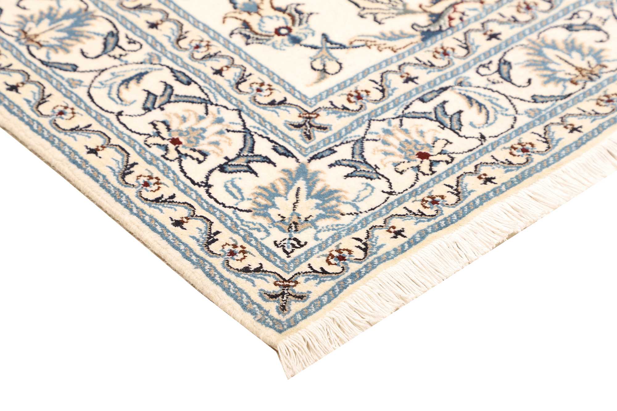 Nain carpets are high-quality Persian rugs woven in the Nain region of Iran. Known for their intricate designs, these carpets feature fine details, often incorporating floral and medallion patterns. Made from premium wool or silk, Nain carpets are prized for their elegance, durability, and smooth texture.