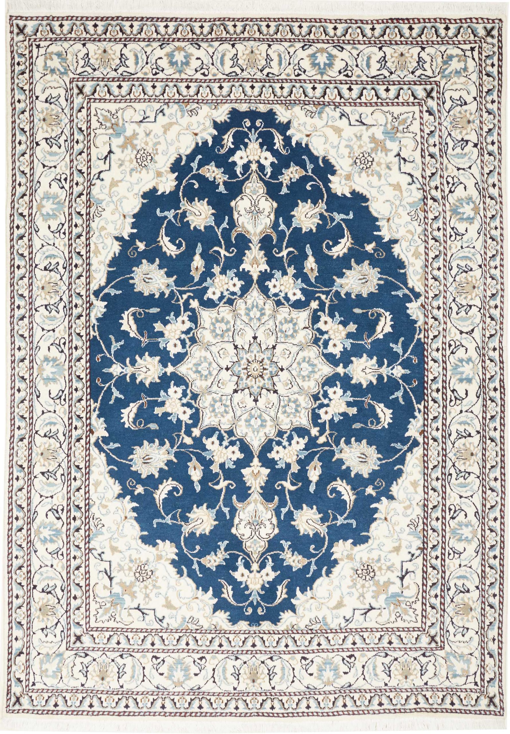 Nain carpets are high-quality Persian rugs woven in the Nain region of Iran. Known for their intricate designs, these carpets feature fine details, often incorporating floral and medallion patterns. Made from premium wool or silk, Nain carpets are prized for their elegance, durability, and smooth texture.