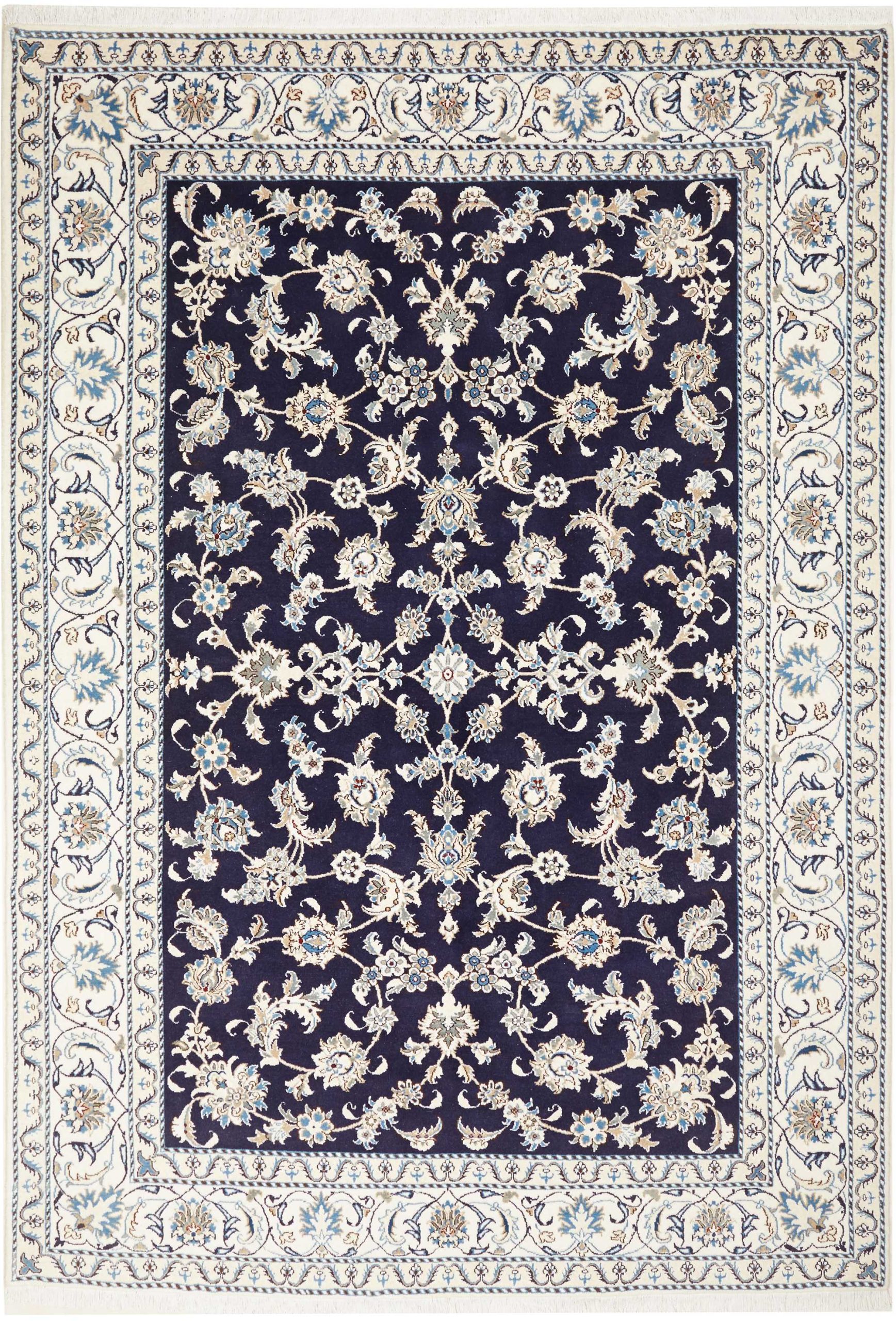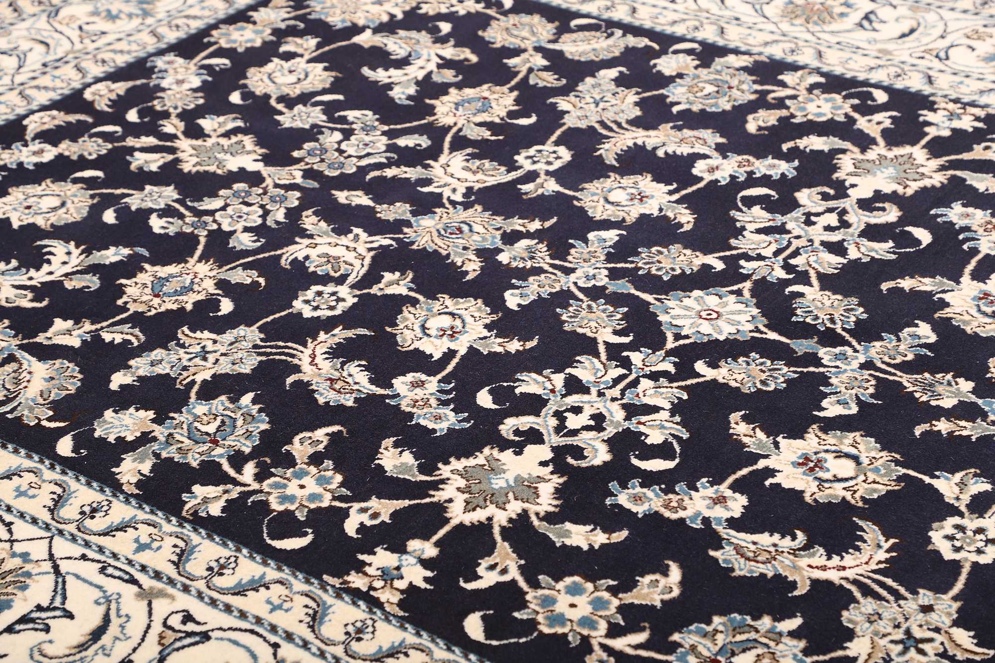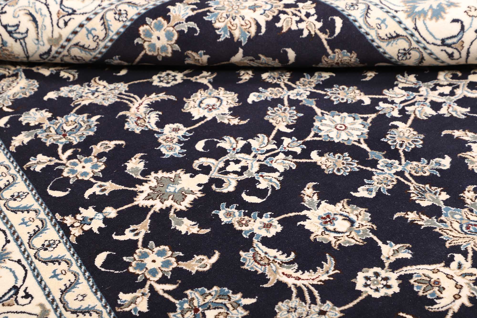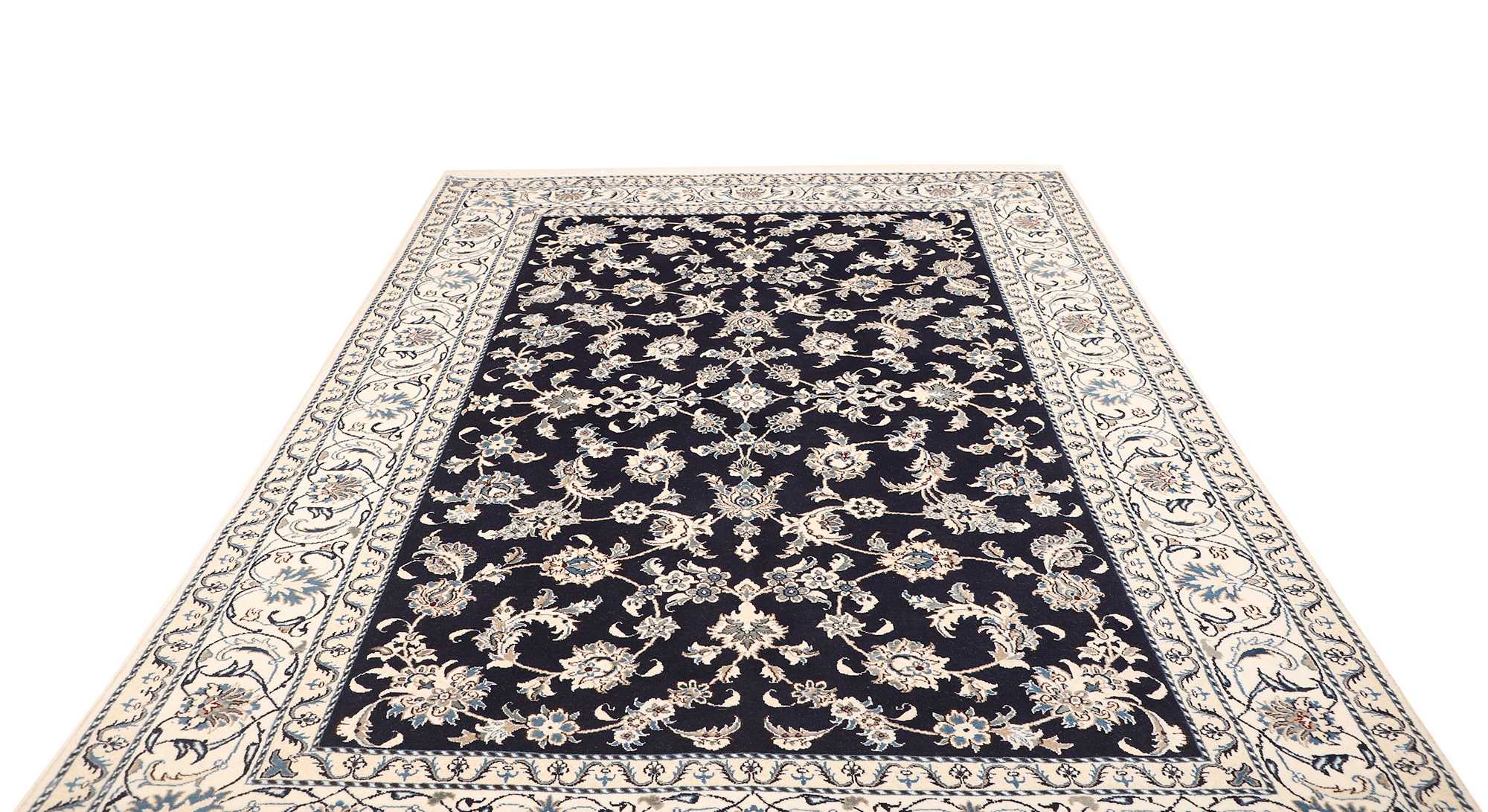 Nain carpets are high-quality Persian rugs woven in the Nain region of Iran. Known for their intricate designs, these carpets feature fine details, often incorporating floral and medallion patterns. Made from premium wool or silk, Nain carpets are prized for their elegance, durability, and smooth texture.