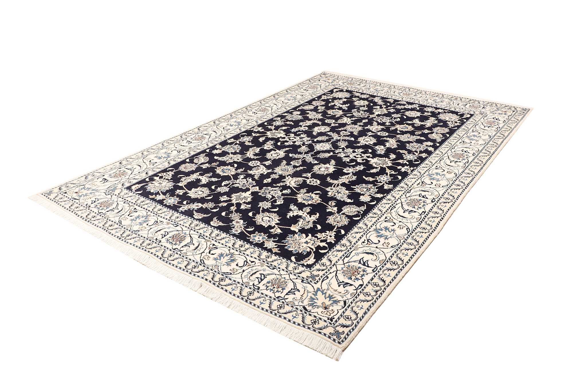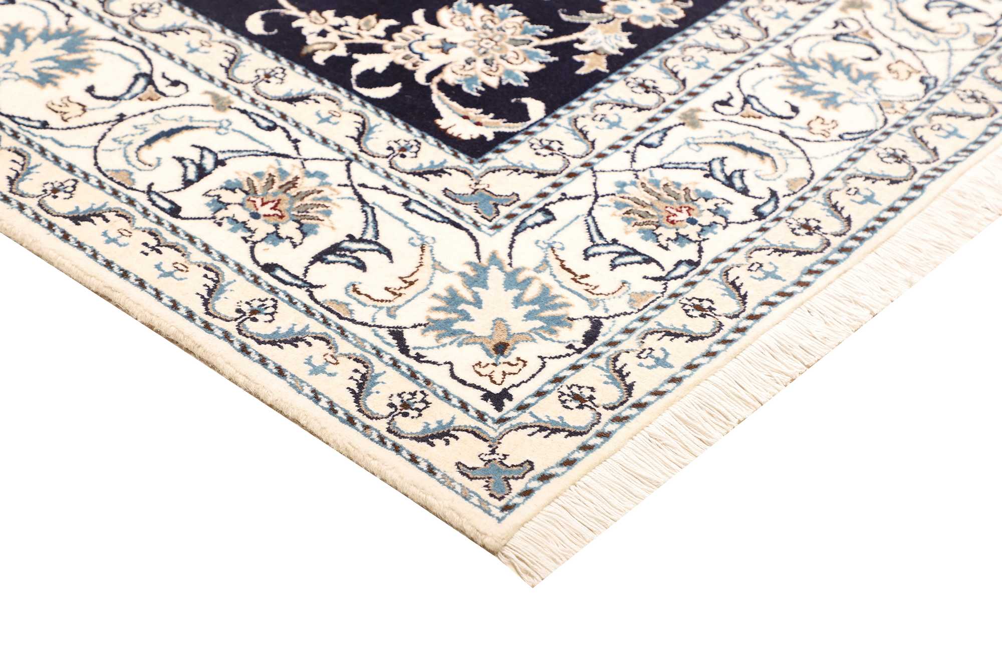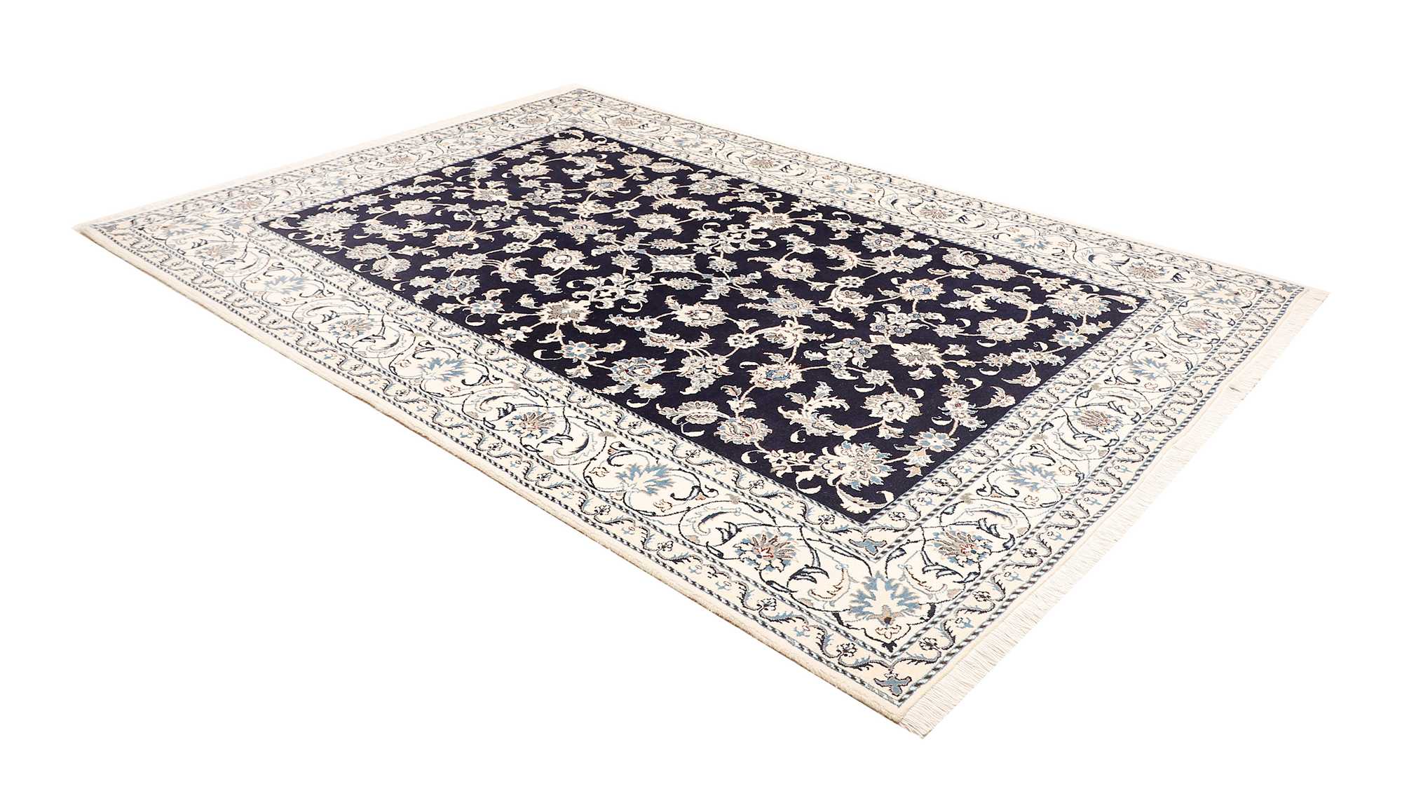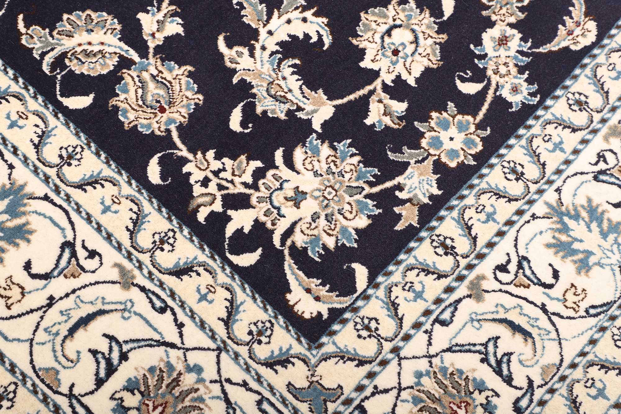 Nain carpets are high-quality Persian rugs woven in the Nain region of Iran. Known for their intricate designs, these carpets feature fine details, often incorporating floral and medallion patterns. Made from premium wool or silk, Nain carpets are prized for their elegance, durability, and smooth texture.