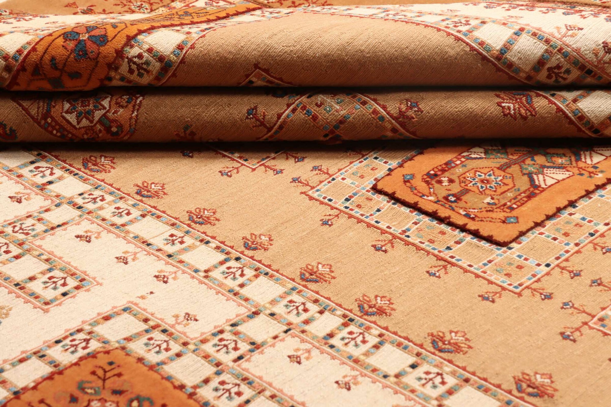 Nimbaft carpets are traditional Persian rugs, known for their simple, yet elegant designs and high-quality craftsmanship. Woven with a focus on fine wool, these carpets often feature geometric patterns and earthy tones. They are valued for their durability, smooth texture, and practical, versatile appeal.
