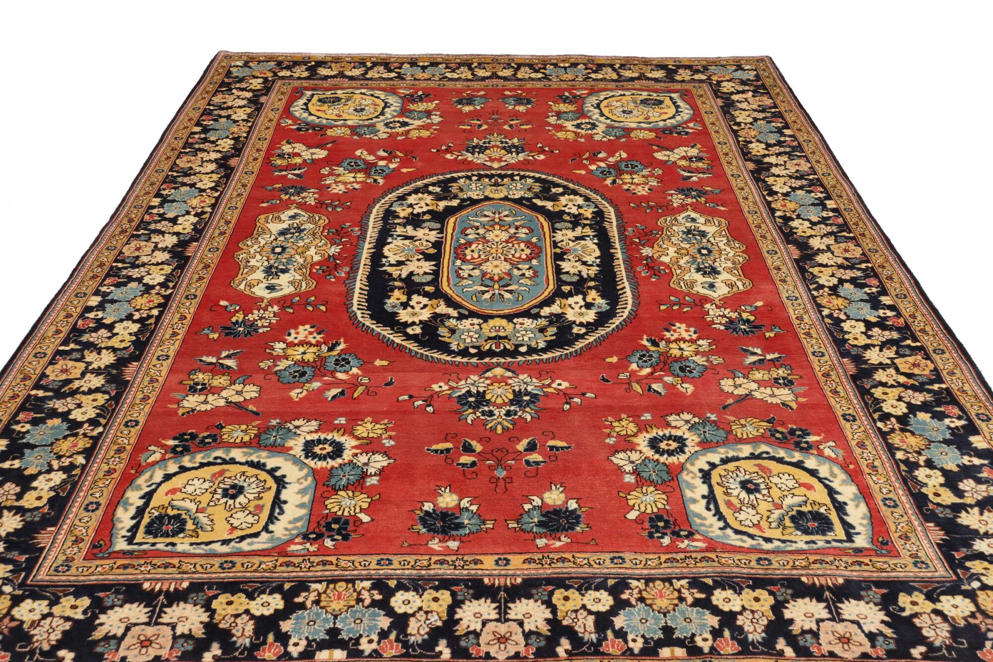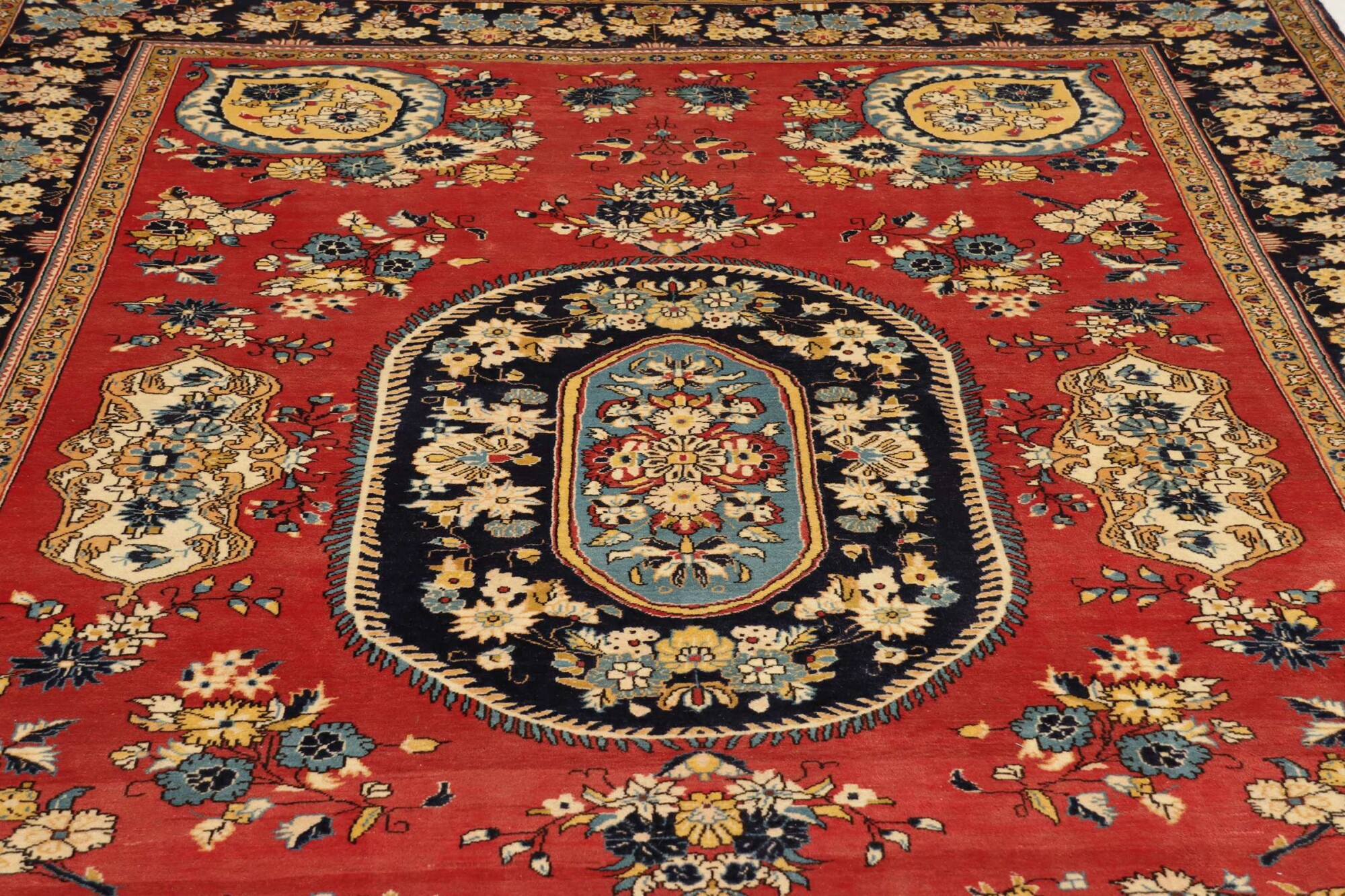 Sarough carpets are Persian rugs, known for their vibrant colors, floral designs, and fine craftsmanship. Woven in the Sarough region of Iran, they often feature intricate medallions and detailed patterns. Made from high-quality wool, these carpets are valued for their durability, elegance, and luxurious feel.