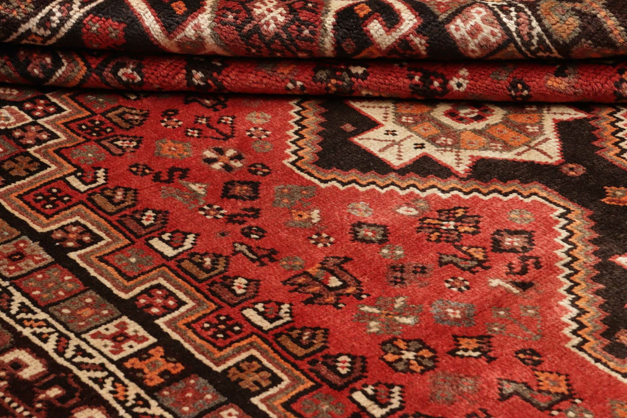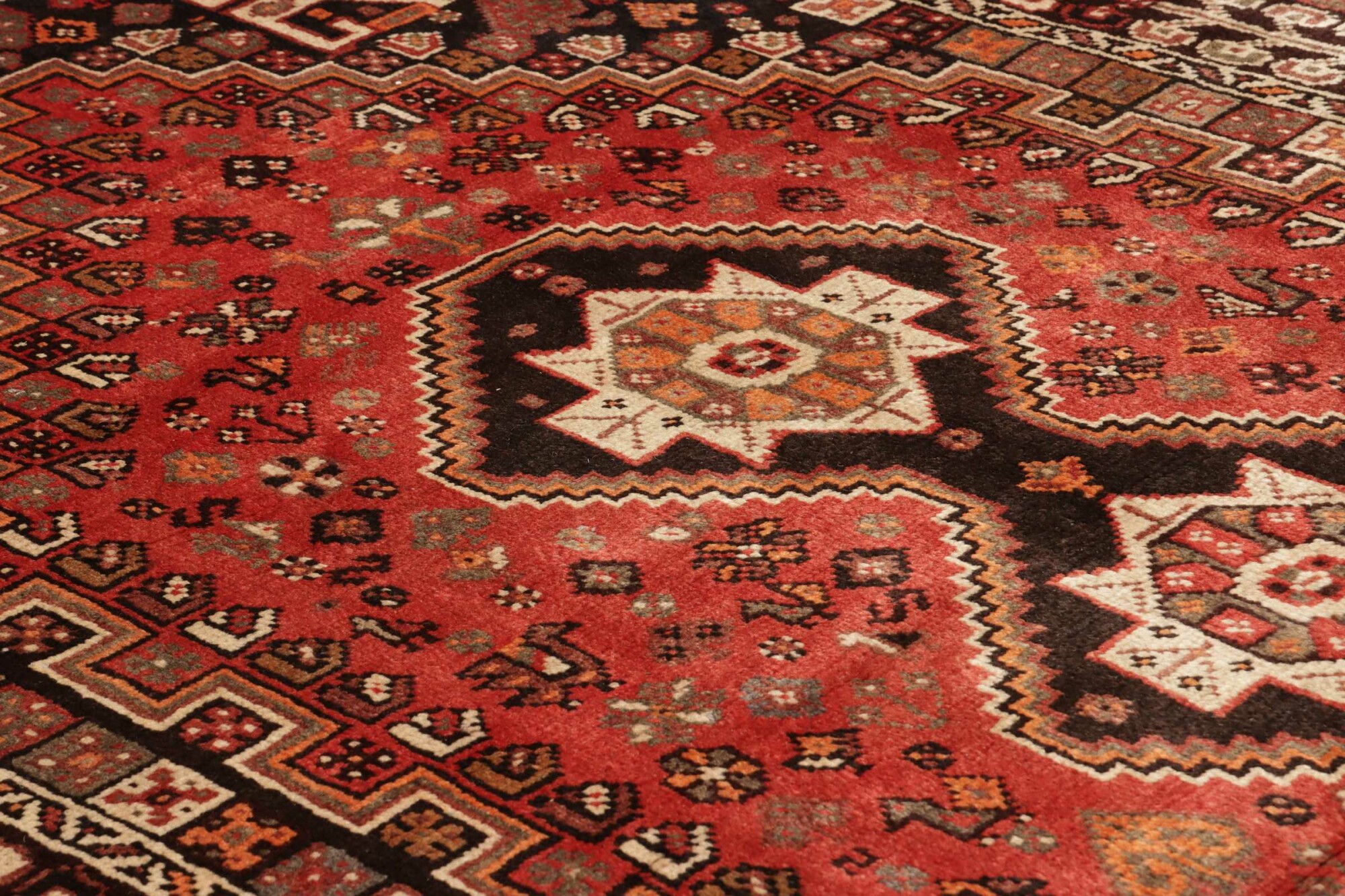 Shiraz carpets are Persian rugs woven in the Shiraz region of Iran. Known for their vibrant colors, geometric patterns, and tribal motifs, these carpets are often made from wool. They are valued for their rustic charm, durability, and the unique artistic style reflecting the culture of the region.