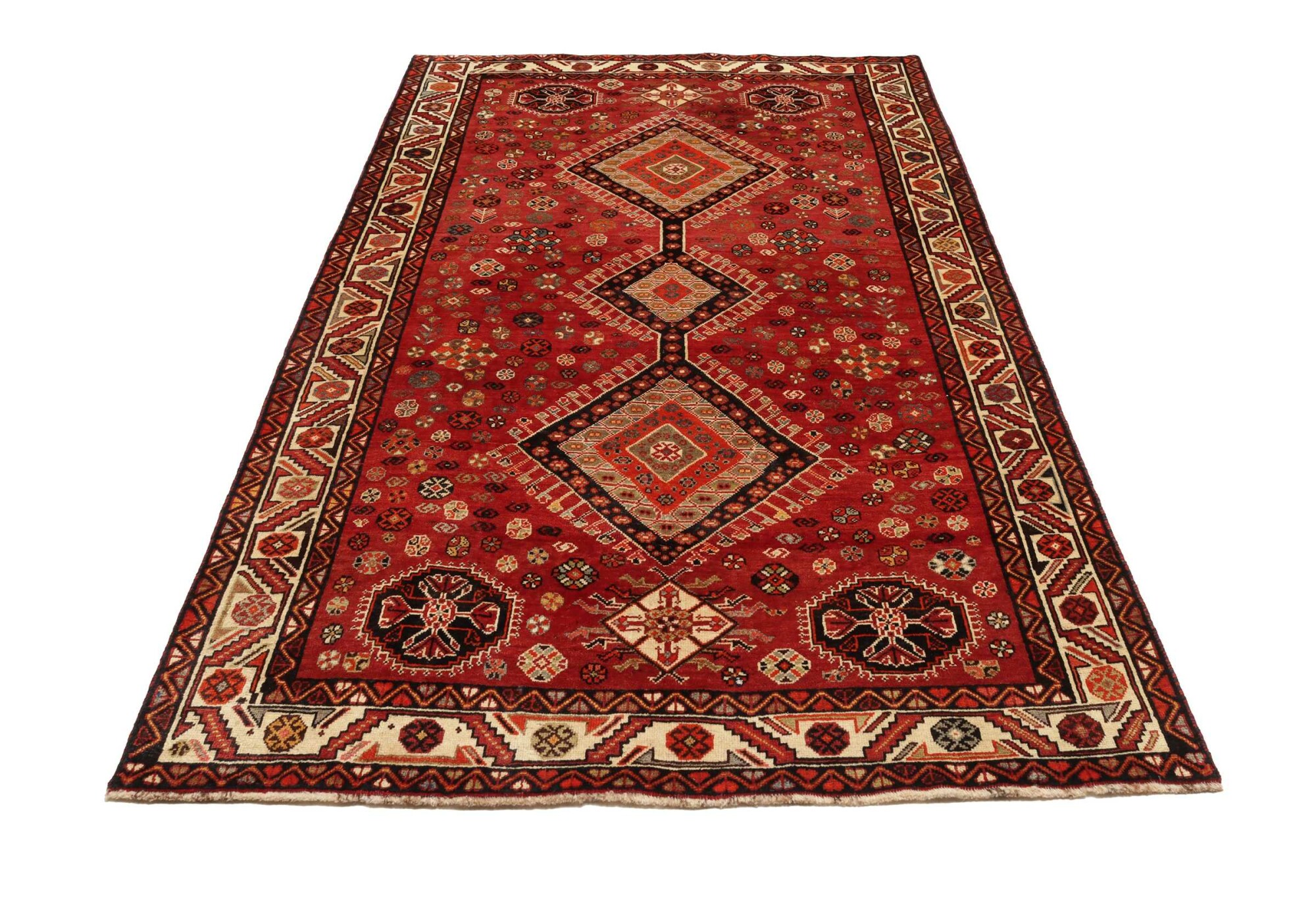 Shiraz carpets are Persian rugs woven in the Shiraz region of Iran. Known for their vibrant colors, geometric patterns, and tribal motifs, these carpets are often made from wool. They are valued for their rustic charm, durability, and the unique artistic style reflecting the culture of the region.